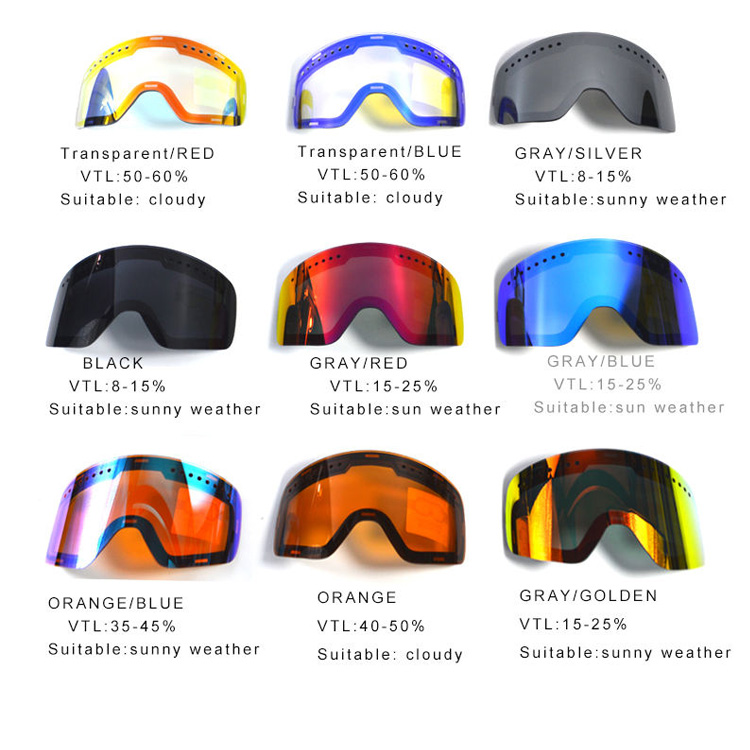 Anti-Fog Custom Magnetik UV 400 goggles ski salju sing apik banget