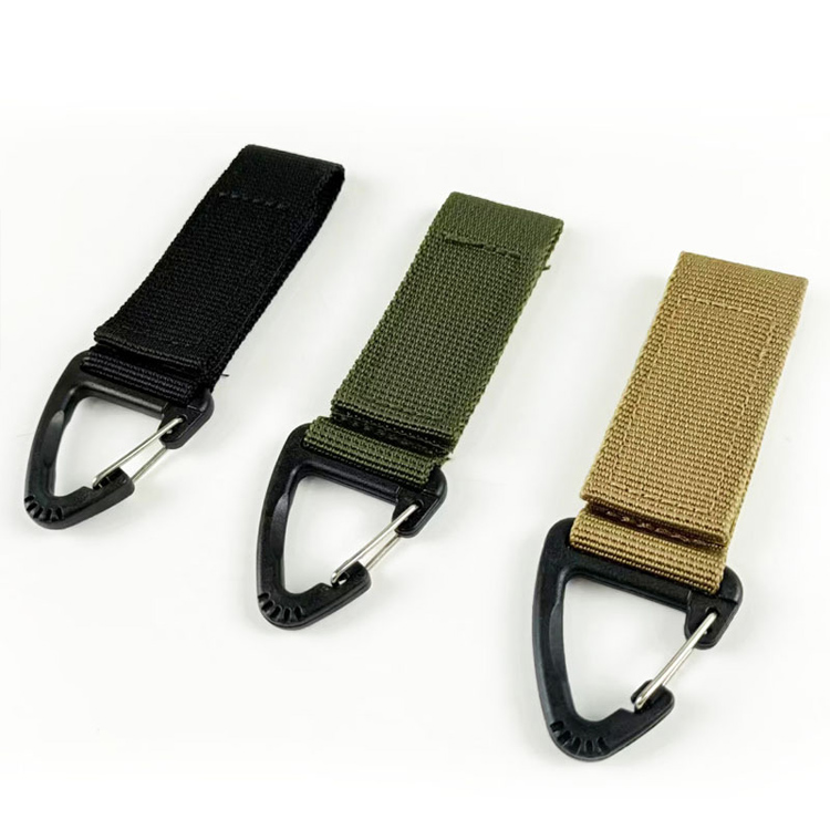 Band Carabiner Keychain Beltal Stap Hanger Key Chain.your Solusi Organisasi Taktis Taktis. Buckle Webbing Nylon iki nggabungake klip gear sing aman kanthi fungsionalitas carabiner. Sampurna kanggo tas ransel, keychains, lan tali sabuk, mesthekake akses cepet lan kinerja sing dipercaya kanggo saben dinane.