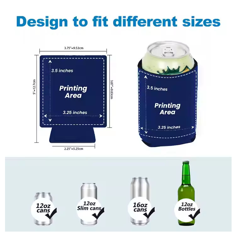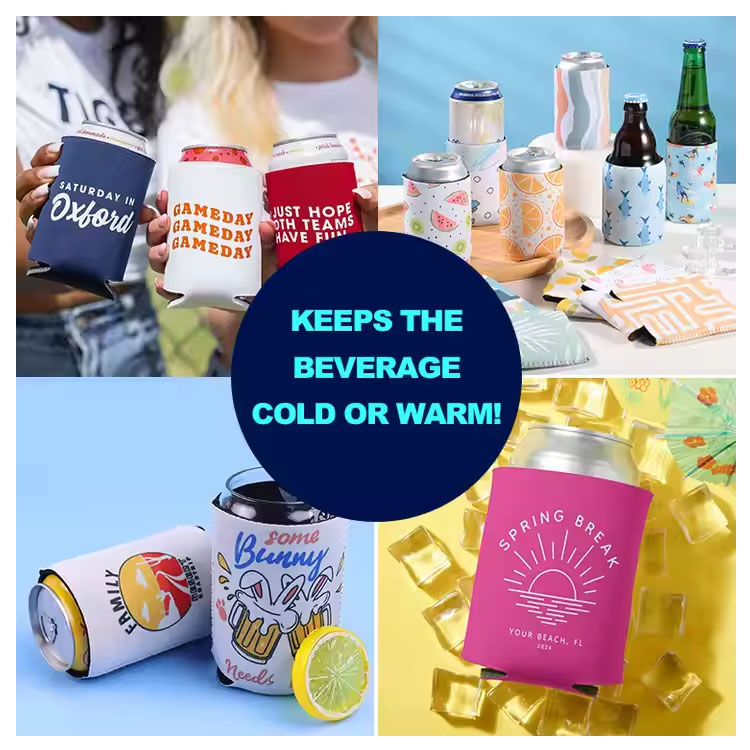Dirancang kanggo snugly cocog karo botol bir standar lan 12 oz kaleng. Cocog kanggo nggunakake omah, pesta, pahargyan, bbq, giveaway, lan hadiah promosi.
