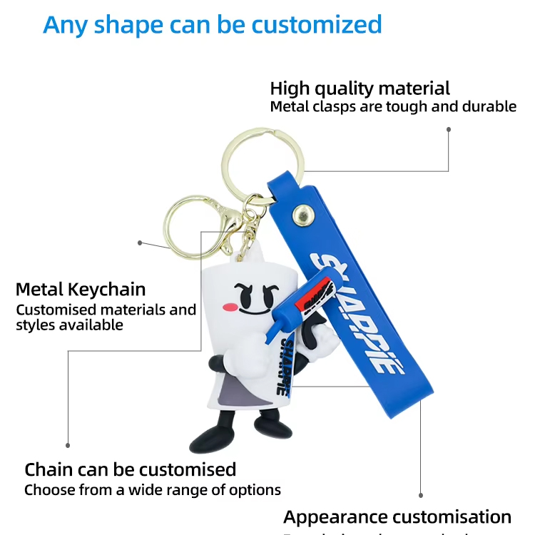 Digawe saka karet pvc eco-ramah, non-beracun, keychain kasebut bisa tahan lama lan fleksibel. Dheweke ora bakal retak, Fade, utawa cacat - sampurna kanggo nggunakake saben tas, tas ransel, utawa kata.