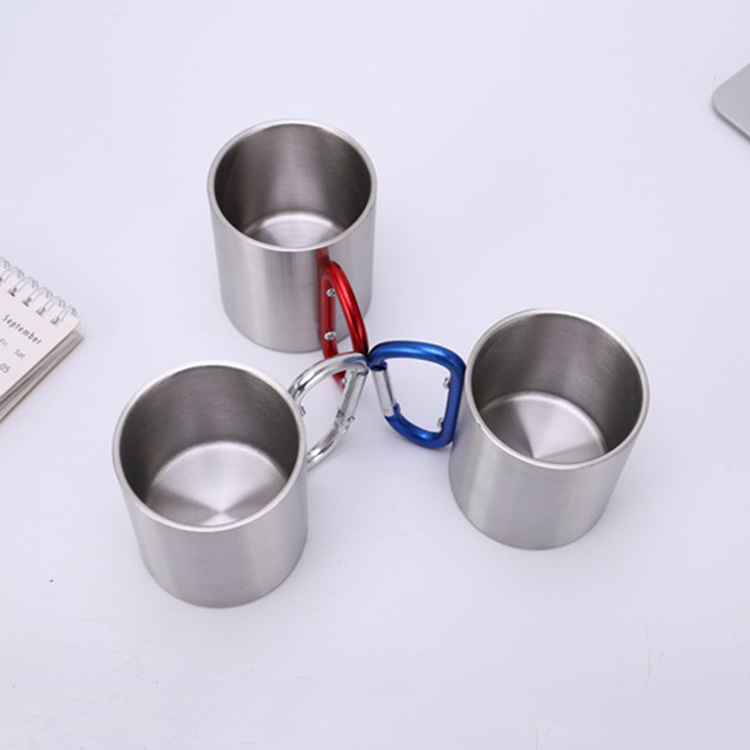 Camping Double With Streetless Stainless Steel Tumbler flask.yo saka solusi termal portable portable kanggo para petualangan ruangan. Tumbler steel stainless 220ml iki nampilake jampel vakum tikel tikel tikel lan gagang carabiner sing trep. Sampurna kanggo lelungan, yaiku njaga suhu optimal kanggo omben-omben sing adhem lan panas.