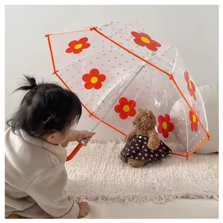 Ditutupi ing cetak lan pelangi sing cerah lan pelangi, payung kasebut enggal tangkap manungsa. Canopy transparan kasebut supaya bocah-bocah ndeleng ngendi dheweke bakal dilindhungi - nambah nyenengake lan sihir kanggo saben dina udan.