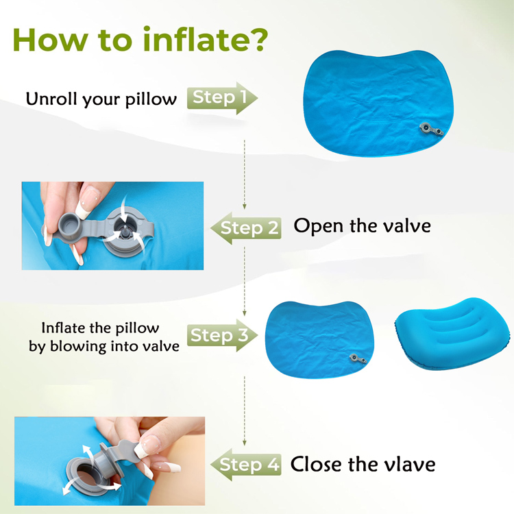 Fitur katup sing gampang digunakake kanggo inflasi kanthi cepet ing 3-4 ambegan lan deflasi luwih cepet, ngaktifake cepet lan kemasan ing papan kemasan utawa akomodasi sampeyan.