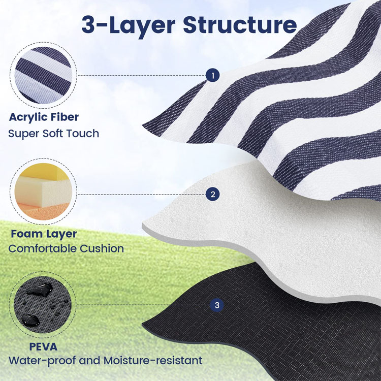 Digawe saka polyester poliester kanthi kapadhuhan kanthi lapisan tpu maju, tikar iki nyedhiyakake pangayoman kelembapan lemah sing lengkap nalika nolak luh, noda, lan nganggo saka panggunaan ruangan bola-bali.
