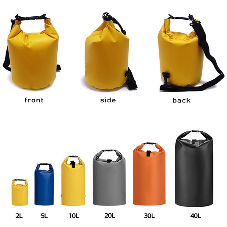 Plancongan portel 2L 5L 10L 20L 40L Bags Waterproof.Yo pokok anti banyu anti banyu kanggo petualangan akuatik. Tas garing sing dicithak login kaping pirang-pirang pilihan kapasitas saka 2L nganti 40l. Sampurna kanggo lelungan pantai, rafting, lan kegiatan ruangan, menehi perlindungan panyimpenan garing lengkap ing lingkungan apa wae.