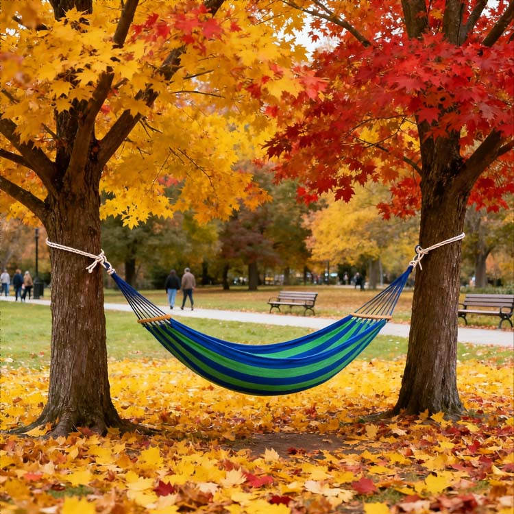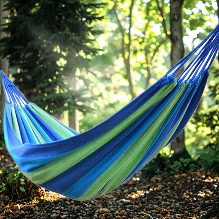 Canven Hammock Canven Ruangan 2-Persoman Canvas Hammock.Yo Sampurna Solo Uwal Kanggo Adventures Ruangan. Camping Hammock sing tunggal iki duwe konstruksi kain tuua sing awet kanthi carabiners gelap lan tali wit sing luwes. Dirancang kanggo panglipur maksimal lan persiyapan gampang, dadi kanca sing cocog kanggo istirahat ara-ara.