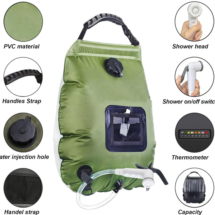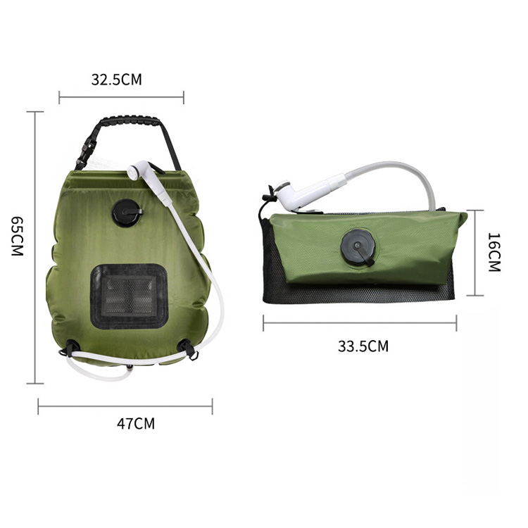 Kanthi volume 20-liter sing wiyar, tas padusan iki nyedhiyakake banyu anget kanggo 2-3 wong utawa pirang-pirang panggunaan, sing bisa digunakake, supaya cocog kanggo lelungan Camping lan petualangan ruangan kelompok.