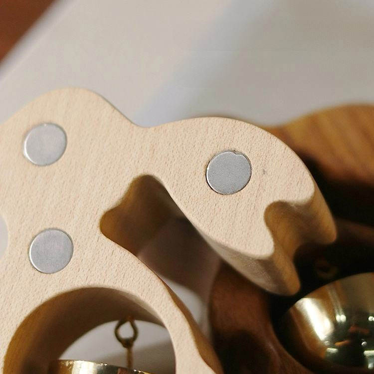 Magnet kulkas iki duwe desain terwelu kayu padhet sing digawe tangan kanthi dipasang karo doorbell kuningan sing apik. Gabungan bahan alami lan rincian artisanal ndadekake ora mung fungsi nanging uga potongan hiasan sing nyenengake.