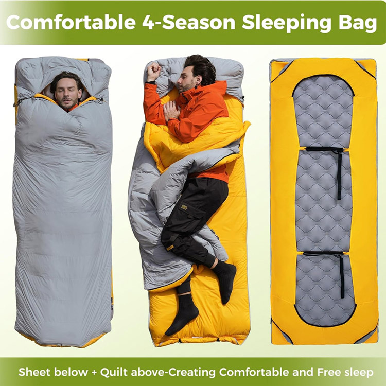 Ngonversi kanthi gampang saka tas mummy tradisional menyang topQUILTS sing guna kanthi nggunakake zipper full-long, nampung pilihan sing beda-beda, nampi pilihan sing beda-beda lan nyedhiyakake jangkoan sing fleksibel sajrone suhu variabel.
