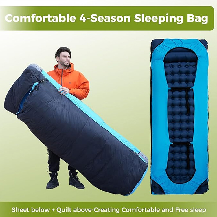 Ultrrtrtralight Down Camping Blanket Duck Down Sleeping Pad.Your sistem turu mangsa kanggo petualangan odter. Ulraly iki ora turu tas turu kanggo nggabungake jampel Down Premium kanthi pad inflatable terintol. Fungsi minangka tas topquilt lan turu, banjur dadi anget maksimal tanpa bobot sing kompromi.