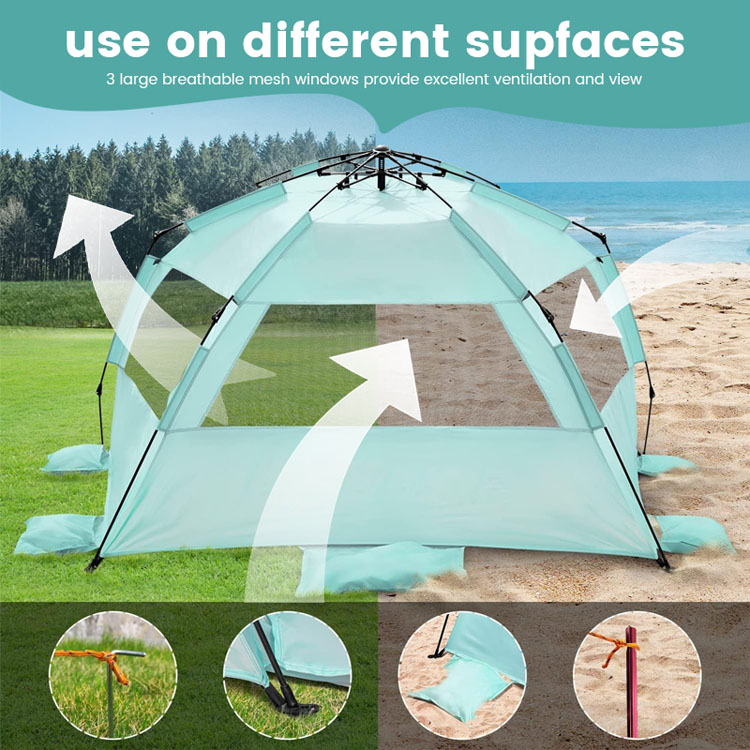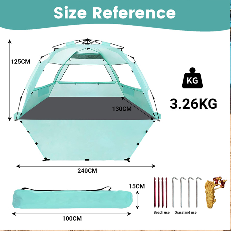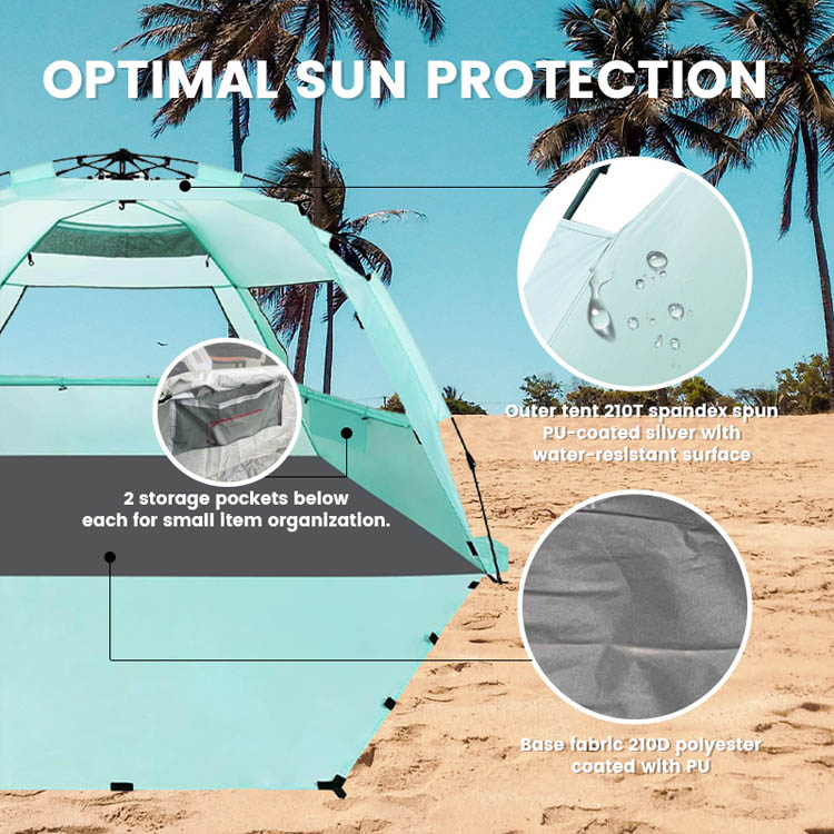 Ultrasonik bulik ultrastral sinar polyester sun shade beach tent.yo suplayer premier Grosir kanggo pangayoman srengenge pantai. Kémah squade sunter poliester iki Ultralight nampilake desain foldable pop-up sing trep. Sampurna kanggo nggunakake pantai ruangan akeh, gabungan penyebaran sing gampang kanthi jangkoan teduh sing dipercaya.